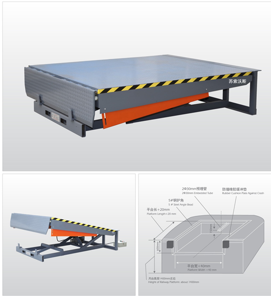 固定式液壓登車橋(又名:高度調節(jié)板/卸貨平臺或電動液壓月臺)是實現貨物快速裝卸的專用輔助設備,安裝在月臺、建筑物上,搭接于貨車車廂,調節(jié)月臺、建筑物地面與車廂之間的高度差。登車橋前端的可翻轉搭接扳在裝卸貨物時始終緊貼車廂。登車橋的角度調節(jié)功能使使貨車與建筑物地面之間架起一座橋梁,各種搬運車可順利通過登車橋,在建筑物地面與車廂間運送貨物。并且,只需一個操作工人作業(yè),即可實現貨物的快速裝卸。它使企業(yè)減少大量勞力,提高工作效率,獲取更大經濟效益.是現代企業(yè)安全生產,提高物料流通速度之優(yōu)選。